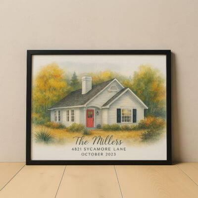 “Personalized Watercolor Home Portrait for Couples – Our First Home Gift for Oliver & Sarah”