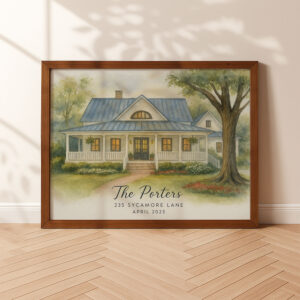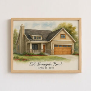 “Personalized Watercolor Portrait of Our First Home – Custom Art for Couples Oliver & Sarah”