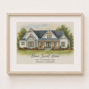 Be the first to review ““Custom Watercolor Home Portrait – Personalized ‘Home Sweet Home’ Art with Address and Date”” Cancel reply