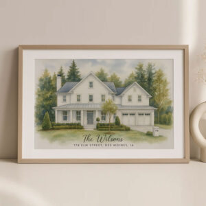 Be the first to review “Custom Watercolor House Portrait for Families – Personalized Art Print of Your Home – Ideal Gift for New Homeowners” Cancel reply