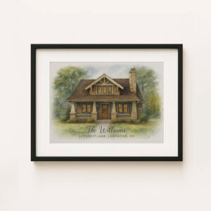 “Custom Watercolor Home Portrait for The Williams Family, 52 Forest Lane, Lakewood, CO”