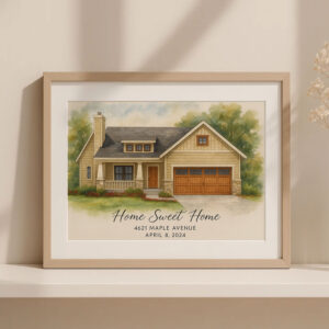 Be the first to review “Custom Watercolor House Portrait for Michael and Emily – Personalized Home Art Gift for New Beginnings” Cancel reply