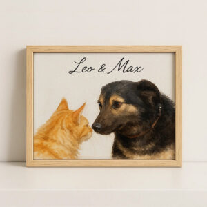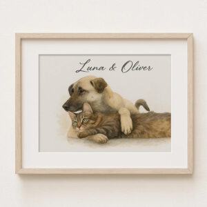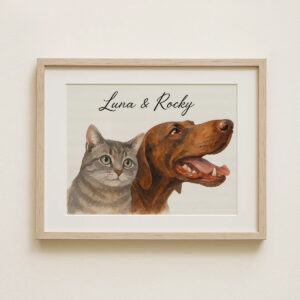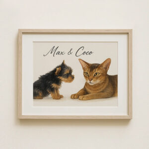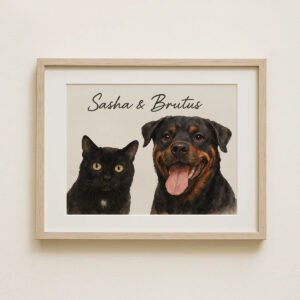 – **Personalization:** Each portrait can be personalized with your pets’ names beautifully inscribed at the top.
