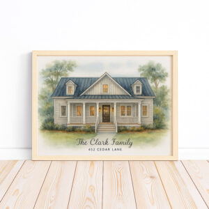 Be the first to review ““Personalized Watercolor Family Portrait of Your Home – Custom Artwork for Unique Gifts”” Cancel reply