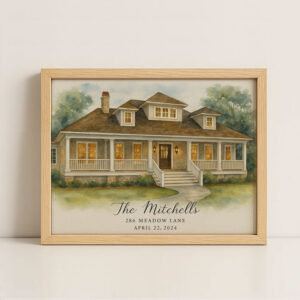 Be the first to review ““Personalized Watercolor Home Portrait for Couples – Custom Art Gift for Thomas & Emily, August 12, 2022”” Cancel reply