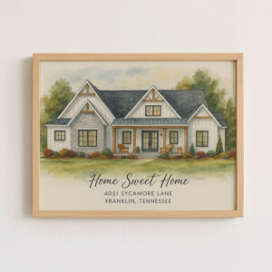 Be the first to review ““Personalized Watercolor Home Portrait for James & Heather at 514 Sunset Lane”” Cancel reply