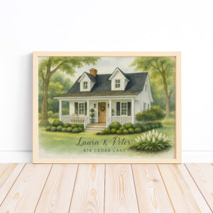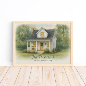 Be the first to review ““Personalized Watercolor Home Portrait of The Harrisons at 24 Oakwood Lane”” Cancel reply