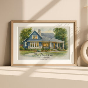 Be the first to review ““Personalized Watercolor House Portrait – The Harrison at 853 Riverwood Lane, Custom Home Art Print”” Cancel reply