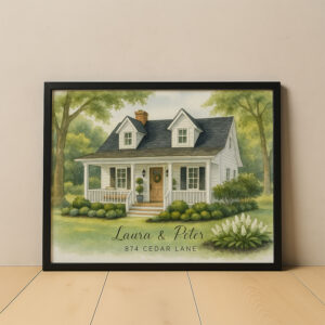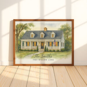 Bring your home to life with this custom watercolor portrait that celebrates your unique story. Click “Add to Cart” and create a timeless piece of art!