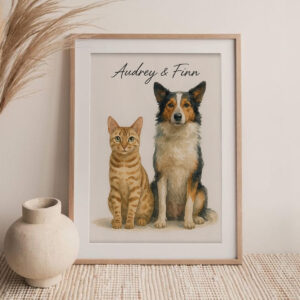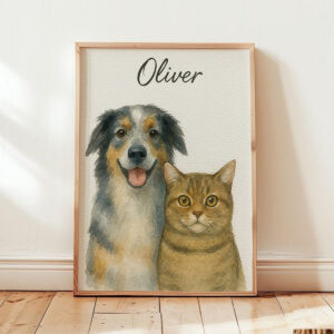 Be the first to review ““Personalized Watercolor Pet Portrait of Max the Dog and Oliver the Cat – Perfect for Animal Lovers”” Cancel reply
